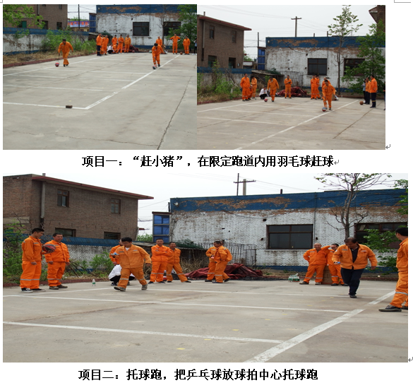 為進一步增強職工們的身體素質,豐富文體生活,增強凝聚力,在“五四”青年節來臨之際兗州文水分公司、呂梁分公司、中材文水分公司精心籌備,周密策劃的職工趣味運動會,在兗州文水分公司生活區如期舉行。本次運動會的主題是“以促進友誼為主,貴在人人參與,活躍公司氣氛”。以青年員工為主20多名干部職工參加了本次運動會。通過自娛自樂這種形式,增強團隊合作精神,培養職工熱愛運動,促進身體健康,增強公司凝聚力、戰斗力、號召力的目的。5月6日下午,三個分公司的職工趣味運動會,在經理王建立宣讀比賽規則后拉開了帷幕。此次活動由辦公室人員組織策劃,得到公司大力支持與全體員工的積極配合和參與。本次運動會共設有八個比賽項目:
