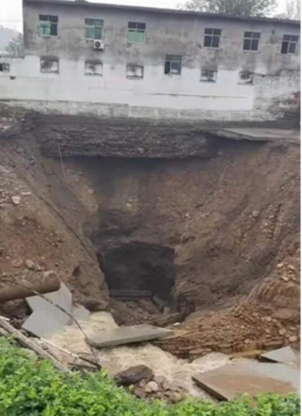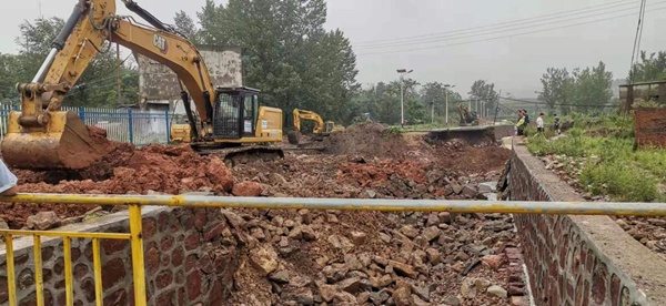 7月17日以來,河南遭受極端強降雨天氣,分公司駐地登封市白坪鄉遭遇歷史有記錄以來降水峰值。白坪鄉前期存在大量煤礦,地下存在采空區,連續強降雨天氣造成白坪小區北側道路塌陷,目測塌陷方量1600m3,造成河道改道,洪水沿塌陷區倒灌入地下。7月21日上午10時許白坪分公司接到白坪鄉政府險情通知,立即組織人員及設備趕赴現場進行搶險救援工作,調派挖機兩臺、汽車兩輛,其中一臺挖機去塌陷區進行險情處理,另一輛挖機配合汽車在礦山裝料運輸至塌陷區。目前位于塌陷區處理險情的挖掘機24小時不間斷作業,力爭以最快速度排除險情,不計代價配合當地政府做好防汛救災工作,做到央企在關鍵時刻的責任擔當。