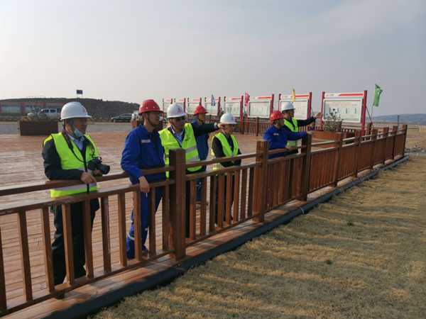 胡總監一行在平陰分公司班子成員陪同下參觀了綠色礦山建設及預裂邊坡。