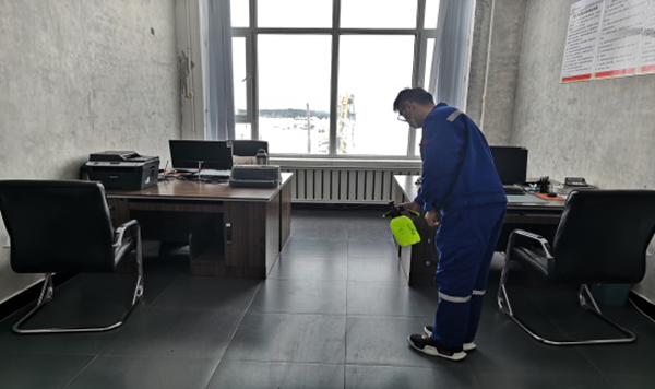 現在的防疫工作要慎終如始,扎實做好防范工作。主要是在對公共區域定時消毒,對外來的員工做好登記檢查后先進行14天隔離,每天進行體溫測量,并發放防疫口罩,消毒液等防護用品。對車輛及公共用品每天進行三次消毒。確保了疫情期間職工的健康安全。