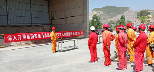 6月2日上午, 為扎實開展好全國第十八個“安全生產月”活動,緊緊圍繞“防風險、除隱患、遏事故”活動主題,馬村分公司礦山一破平臺舉行了2019年度“安全生產月”活動啟動儀式。馬村分公司全體人員及千業水泥廠相關領導共同參加了此次活動。