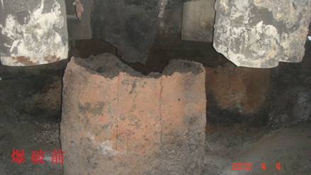 兗州中材建設(shè)有限公司云維項(xiàng)目部 實(shí)施石墨電極分解爆破 近日,應(yīng)云維乙炔化工有限公司(業(yè)主)要求,我項(xiàng)目部對(duì)其廠區(qū)1#電石爐內(nèi)石墨電極成功實(shí)施分解爆破。 本次爆破點(diǎn)位于業(yè)主電石車間二層電石爐內(nèi),技術(shù)人員和安全員經(jīng)現(xiàn)場勘查發(fā)現(xiàn):石墨電極為直徑1.2m、高約1.5m的圓柱狀石墨體,從中心呈輻射狀均勻分布12塊約1cm厚鋼板。三個(gè)電極呈“品”字狀分布在一個(gè)直徑約7~8米的幾乎密閉的鋼制反應(yīng)爐內(nèi)(有洞口)。爆前充分勘察了爆區(qū)周圍的實(shí)際情況,結(jié)合從網(wǎng)絡(luò)上搜集的對(duì)石墨電極的性能分析和以往的爆破經(jīng)驗(yàn),選用合適的爆破器材,擬定了幾種爆破方案。充分分析爆破方案的可行性后,選擇其中可行性較高的兩種方案進(jìn)行了試爆,結(jié)合兩次試爆效果,經(jīng)調(diào)整爆破參數(shù)后,最終成功拆除。 本次爆破對(duì)僅隔約10米遠(yuǎn)、正在生產(chǎn)的2#爐和庫房未產(chǎn)生任何影響。 這次爆破工作雖小,但我們本著謹(jǐn)慎、科學(xué)的態(tài)度對(duì)待。從爆破參數(shù)的選擇到安全警戒都認(rèn)真小心,取得了預(yù)想的效果。 通過這次爆破,積累了對(duì)巖石以外材料的爆破經(jīng)驗(yàn),也增加了我項(xiàng)目部尤其是年輕人工作技能。也到了業(yè)主的認(rèn)可。(兗州中材云維項(xiàng)目部 )