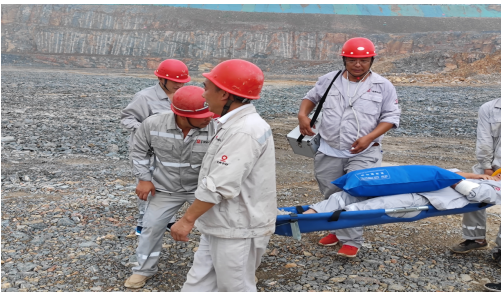 本次演練由大地集團副總裁趙中要任礦山應急救援總指揮,寶豐分公司副經理吳義濤任現場應急救援總指揮,經理助理陳壯任現場應急救援副總指揮,組建現場應急救援工作組:應急搶險組、警戒聯絡組、醫療救護組、后勤保障組、設備技術組。參演人員共36人,充分調動挖掘機、破碎錘、鐵鍬、急救箱等搶險救援工具。縣應急管理局領導,業主管理人員、分公司員工和業主所屬礦山員工觀摩演練。