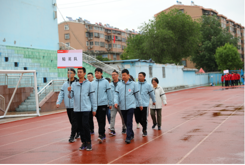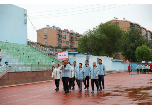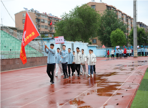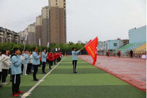 踏著激昂的運動員進行曲節拍,運動員們精神抖擻、斗志昂揚,排列著整齊的方陣,在旗手的引領下,喊著響亮的口號,依次有序地走過主席臺。