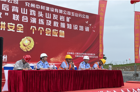 為深入宣貫黨的二十大精神和習近平總書記關于安全生產重要論述,進一步樹牢“以人為本、安全發(fā)展”的安全生產管理理念,貫徹“安全第一、預防為主、綜合治理”的安全生產方針,強化非煤礦山事故應急救援管理工作和應急救援隊伍建設,切實提高分公司應對礦山突發(fā)事故的聯(lián)合應急救援綜合能力,6月17日,兗州中材玉山分公司聯(lián)合江西玉山萬年青水泥有限公司、玉山縣藍天救援隊、玉山縣人民醫(yī)院等舉辦2023年“物體打擊事故”聯(lián)合演練及救援知識培訓活動。玉山縣應急管理局局長吳高峰、玉山萬年青水泥有限公司總經理李躍華等出席本次活動并致辭。