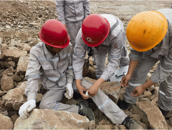 上午10時整,演練正式拉開序幕。假設情況是該露天礦山某區(qū)域發(fā)生了邊坡坍塌,造成一名作業(yè)人員腿部受傷被困。接到報告后,項目副經理楊宇立即啟動應急預案,迅速組織了由醫(yī)療救護組、應急搶險組、警戒保衛(wèi)組、物資保障組等部門人員組成的應急救援隊伍,攜帶救援裝備,迅速趕赴事故現場。同時,通訊保障組也迅速建立起臨時通訊網絡,確保現場信息暢通無阻。