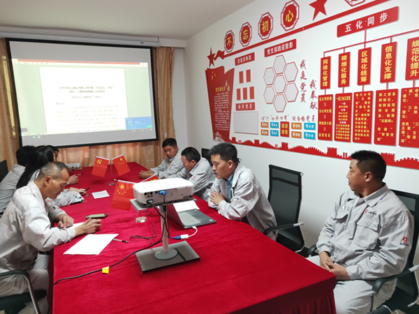保德項目部于9月28日開展“不忘初心、牢記使命”主題教育活動,會上,項目部副經理劉海瑞帶領員工學習黨委劉書記《在中材礦山建設有限公司開展“不忘初心,牢記使命”主題教育部署會上的講話》。