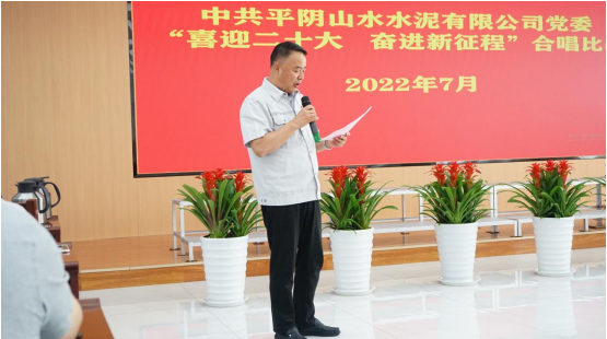 合唱比賽結束后,平陰山水總經理丁宗新發表總結講話:今天,我們在這里以合唱比賽的形式,共同紀念和慶祝黨的101周年華誕,我謹代表公司向取得優異成績及全體參賽同志表示誠摯的祝賀!向頂高溫冒酷暑奮戰在生產經營一線的黨員、干部及職工表示親切的問候和崇高的敬意!