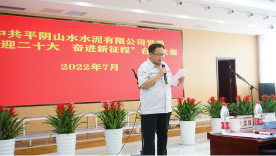 15:50分活動正式開始,平陰山水黨委書記侯福存發表主旨講話:今年是建黨101周年。100多年來,我黨團結帶領全國各族人民自強不息、拼搏進取,戰勝艱難險阻,取得了舉世矚目的輝煌成就,帶領我們昂首闊步邁向偉大復興。今天,我們隆重集會,用歌聲頌揚黨的光輝歷史,緬懷黨的豐功偉績,向黨的101歲華誕獻禮,向黨的二十大獻禮。公司黨委舉辦本次合唱大賽,既是豐富黨建工作形式、促進黨建和公司中心工作高度融合的重要舉措,也希望通過比賽,進一步增強黨群、干群凝聚力和向心力,激勵全體干部職工堅定信念、迎難而上,在“百日趕超”勞動競賽中繼續立足崗位、攻堅克難,全力沖刺“大趕超”任務目標,為公司項目建設和高質量發展貢獻更大力量。