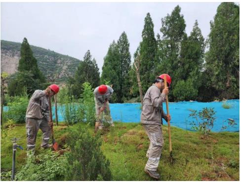 青年突擊隊積極參加兗州中材河南片區黨支部“黨旗紅,礦山綠”活動,為趕上降雨在烈日之下前后共種植各種樹木千余顆,提升了大家保護生態環境的意識,增強了綠化、美化礦區的責任感,充分展現了新時代青年的奉獻精神和央企員工愛崗敬業的風采,以實際行動踐行了“綠水青山就是金山銀山”發展理念,為推動綠礦山色發展作出了貢獻。